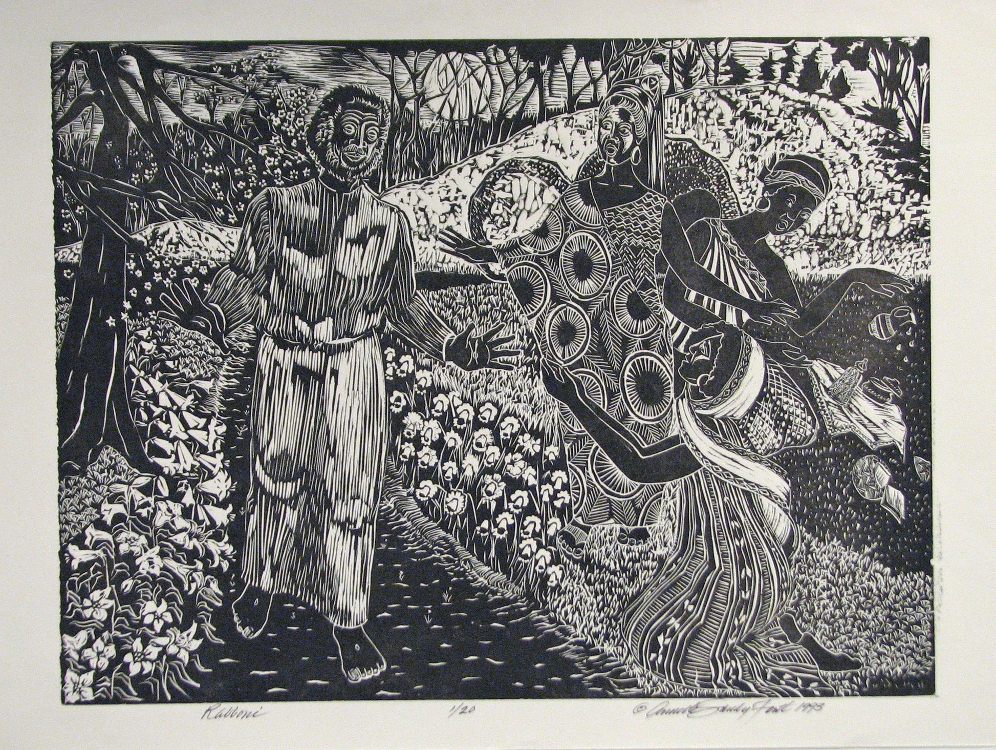 Capturing the moment in the book of John when Mary and the women are at the tomb and Mary sites the resurrected Christ walking in the garden and exclaims Rabboni, which means teacher this is one of the most ambitious of my block prints, sized 18 x 24". Carving an image of this size with all its details proved to be an undertaking of love and focus.